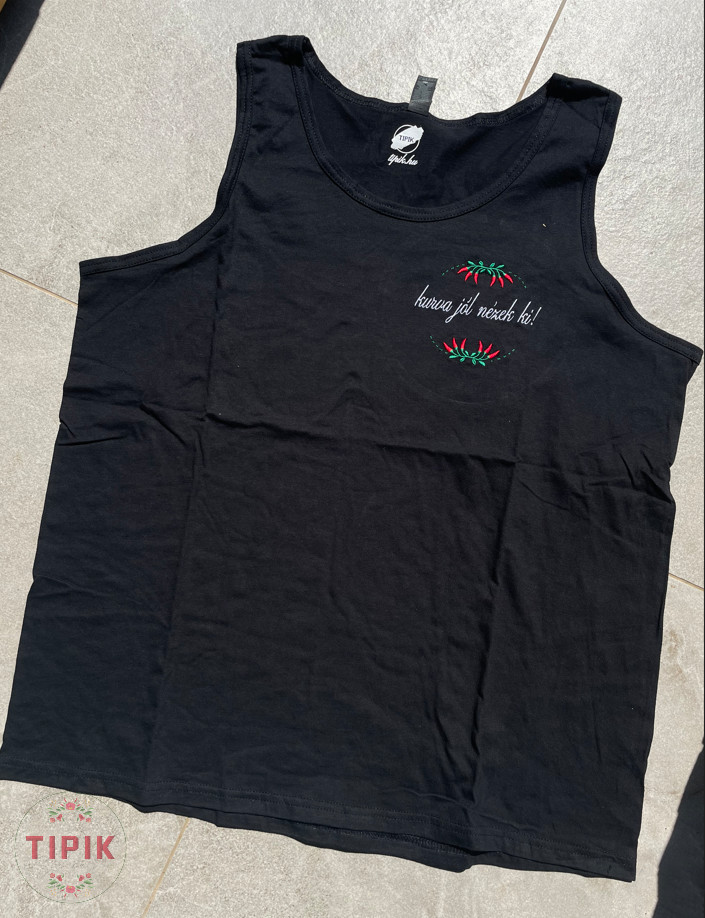 Kurva jól nézek ki! - férfi trikóAdd át ezt az őszinte vallomást a szíved fölé hímezve!A minta gép hímzéssel készül, fekete és fehér trikóra kérhető. A méret táblázatot megtalálod itt a képeknél, kérlek mindenképp nézd át rendelés előtt!