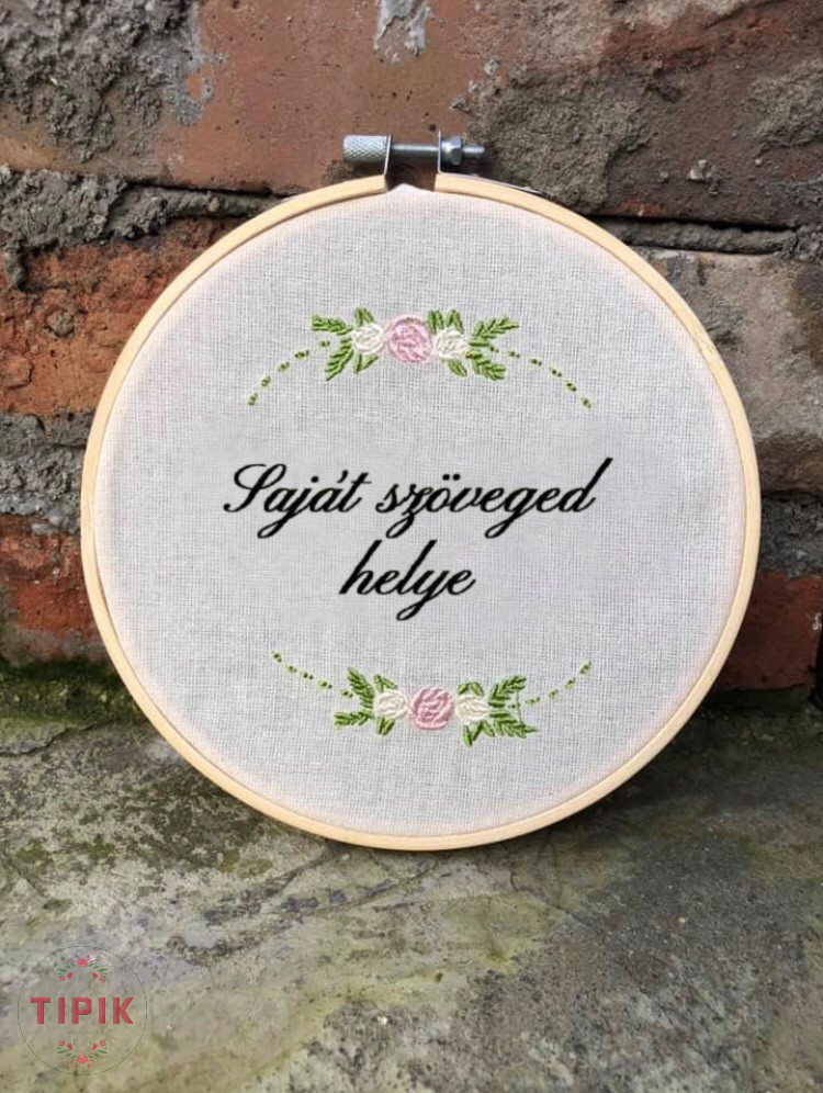 Gépi hímzéssel készült fali dísz, keretbe ragasztva. Falra akasztható, illetve bárminek könnyen neki lehet dönteni.