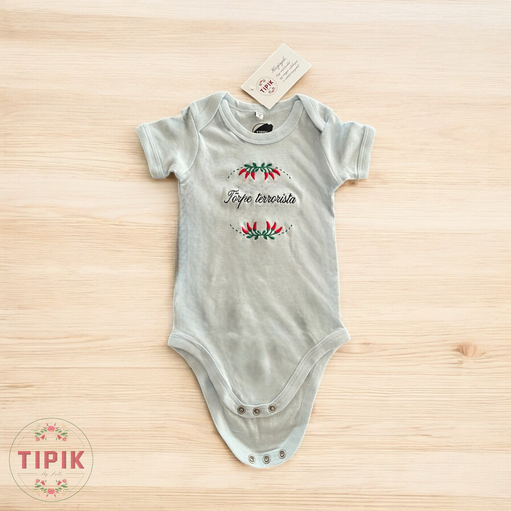 Hímzett vicces baba body - csak egy csipet tahósággal, ami a törpe terroristáknál etikus:)